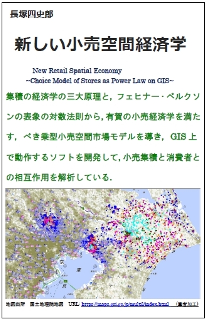 - 2018年 夏に国土地理院が任意にズームイン・アウトできるフリーソフト「地理院地図」を提供していることを知り、精密に解析しなお して拙著の発展版を書くことを決意。同年、藤田昌久/ジャック・F・ティス著『集積の経済学』(邦訳)を読んで長期の流れをつかんだので、アカデミックでかつ実証的な消費空間経済理論を目指すことにした。